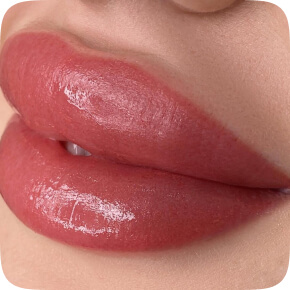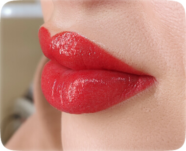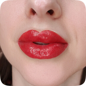 Такая техника татуажа губ предусматривает равномерное нанесение пигмента по всей поверхности губ. Цвет пигмента может соответствовать натуральному